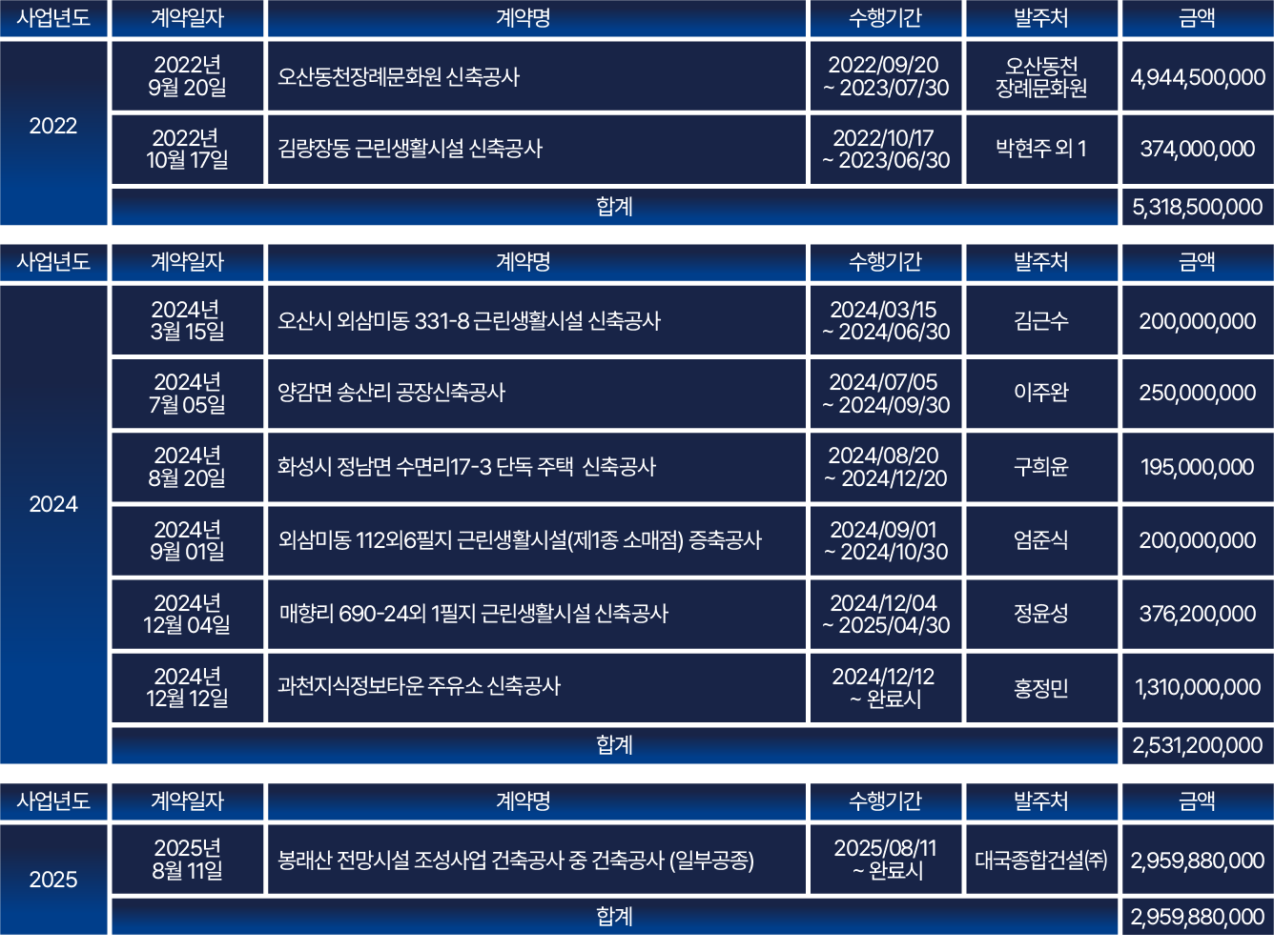 수주 및 수행 실적